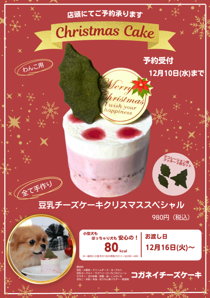 犬用『クリスマスケーキ』ご予約受付中です