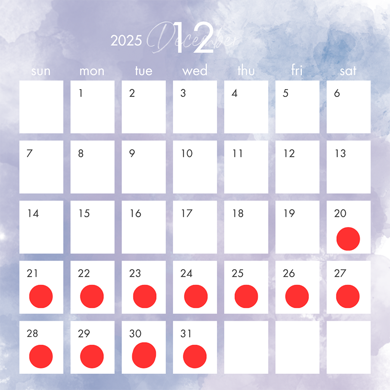 ※上記画像の赤丸の日は繫忙期料金となり、基本料金の2割増しになります。