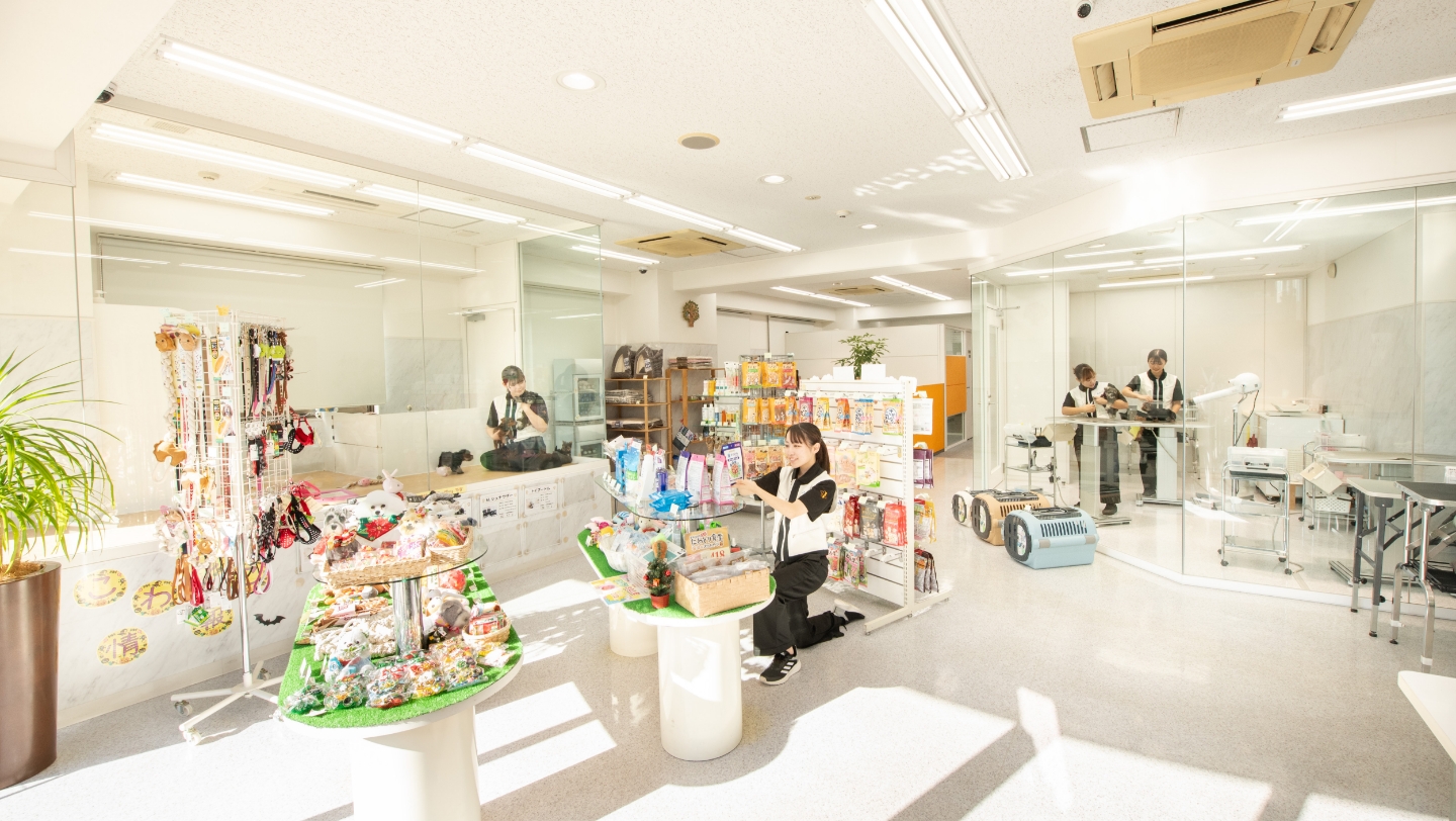 校舎1階には生徒の実習店舗『ペットショップKAKO』があります。