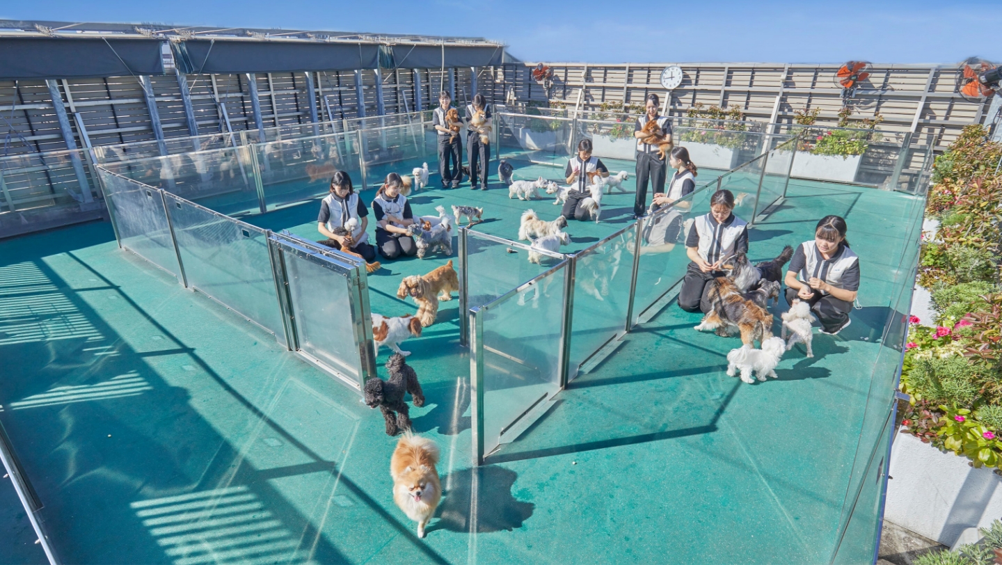 広々とした屋上ドッグランやドッグパークルームでは、約250頭のモデル犬が快適に過ごせる環境を整え、動物たちの健康とストレスケアに配慮しています。