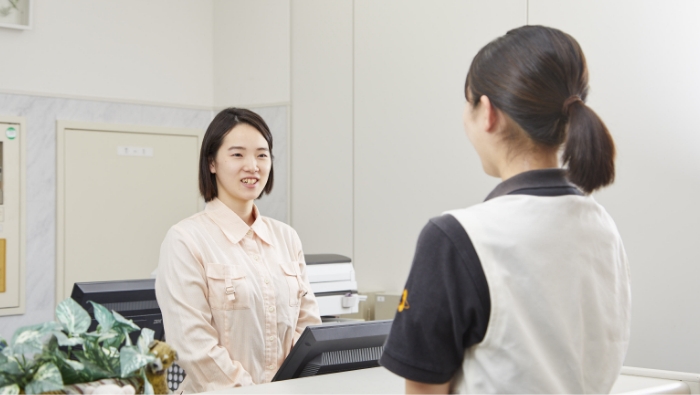 ペットショップの奥には総合受付があります。入学手続や各種証明書の発行を行います。