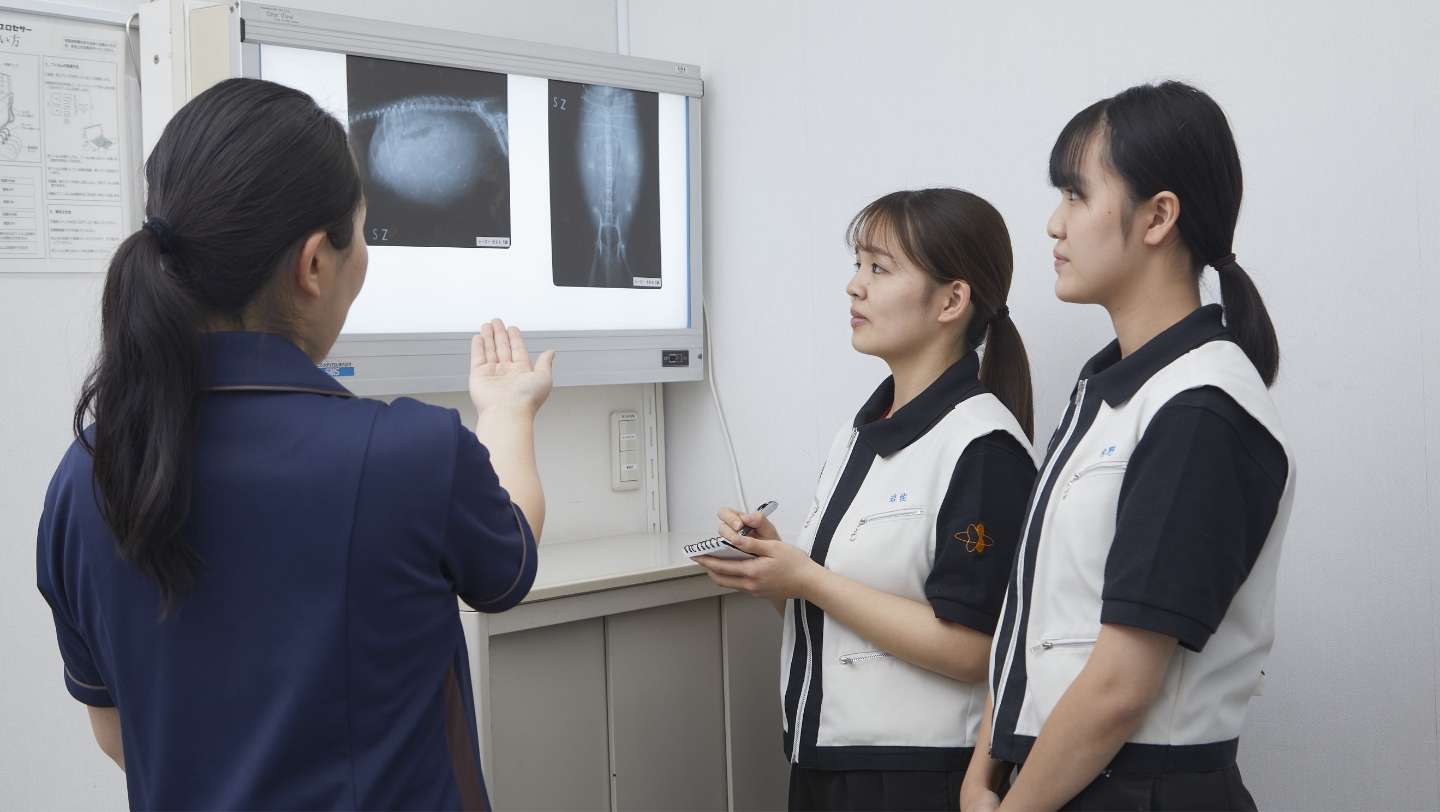 カコでは、常勤の獣医師から動物看護の知識と技術を直接指導。動物看護のスキルも習得します。