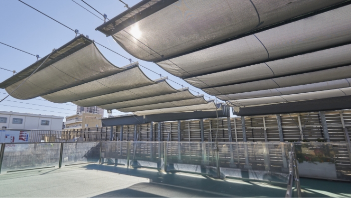 ドッグランにはカーテンが設置されているので、真夏でもお散歩することができます。