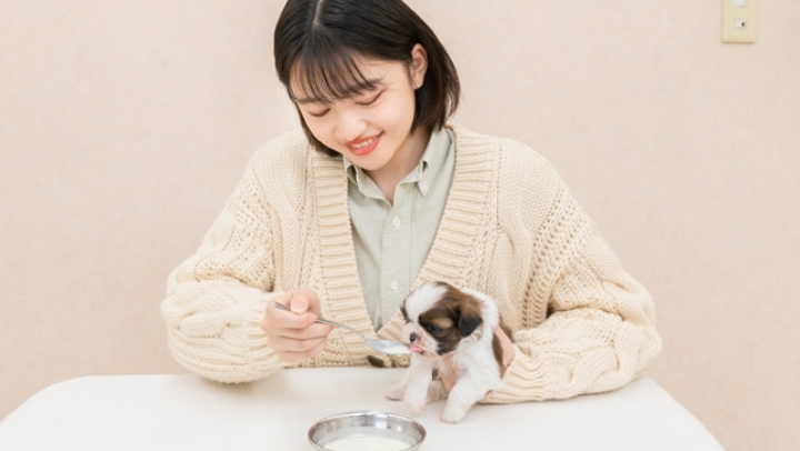 仔犬の食事のお世話を体験できます。小さな仔犬たちにごはんをあげながら、お世話の楽しさや命の大切さを実感できます!